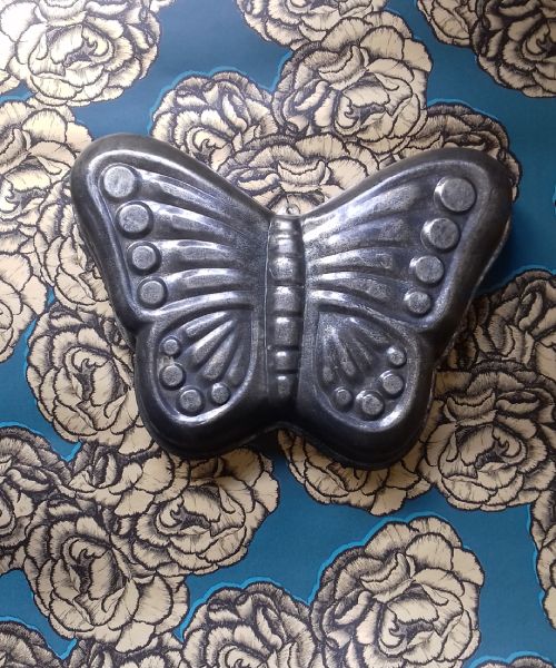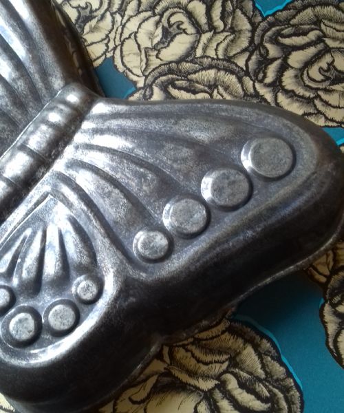 Ancien moule à gâteaux en forme de papillon en tôle emboutie.