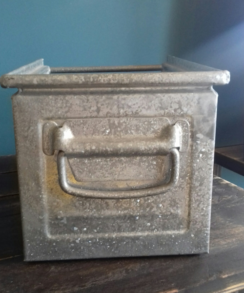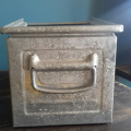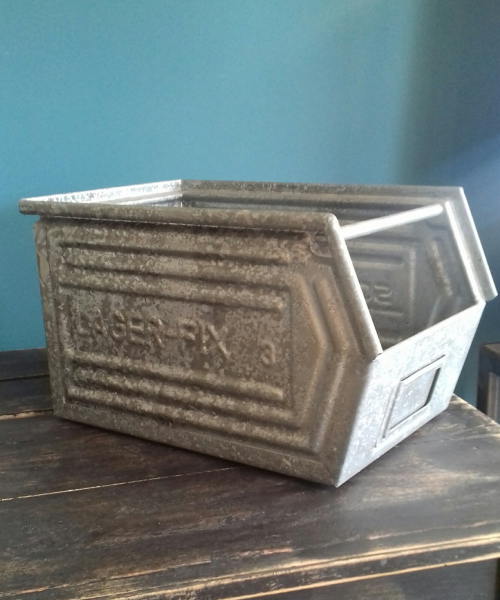 Véritable bac d'origine industrielle d'usine ou atelier. Caisson tout en métal de la marque de référence SCHÄFER LAGER-FIX. Très solide avec poignée de transport à l'arrière.