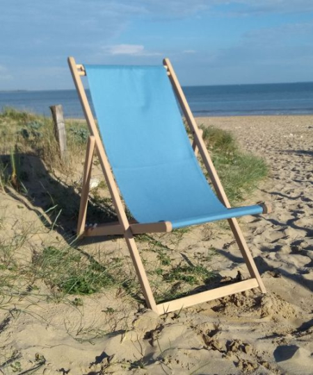 Transat chilienne simple en hêtre et tissu en acrylique bleu ciel (sans bras – sans allonge).