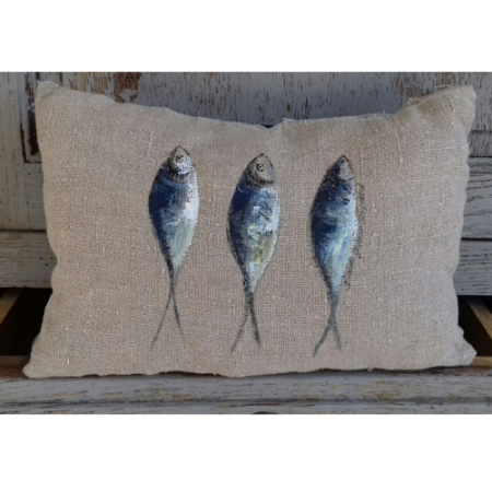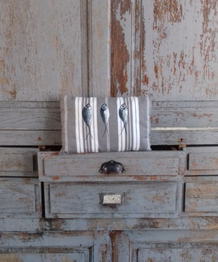 D’où proviennent les motifs uniques du coussin sardines bleues ?