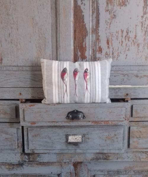 Coussin toile à matelas sardines bordeaux