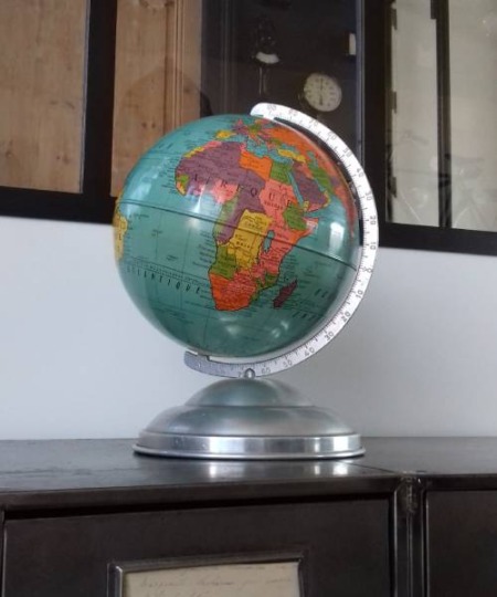 Joli globe en métal avec ses belles et vives couleurs, estampillé : Cartes Taride 154 Boulevard Saint-Germain Paris VIè - 1967
