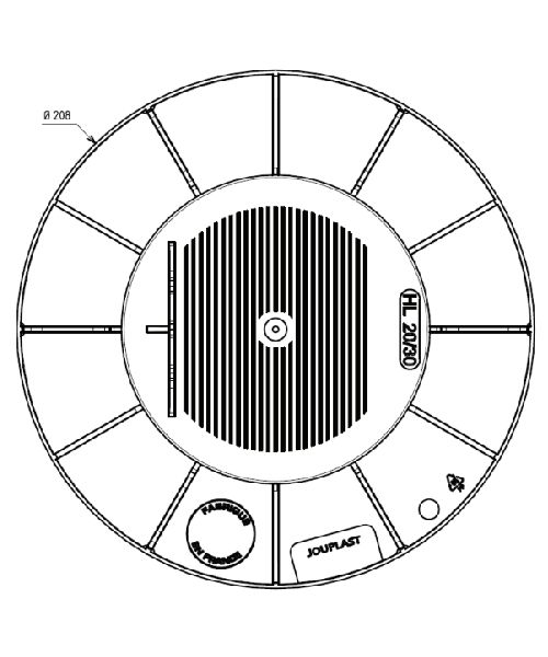 Le diamètre du flasque de ce plot de terrasse est de 208 mm, offrant une base stable pour vos installations.
