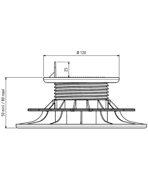 Ce plot de terrasse est réglable de 50 à 80 mm, offrant une flexibilité pour vos projets de terrassement.